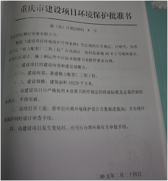 格力電器配套廠三期工程環(huán)境影響報告表的環(huán)評批復(fù)