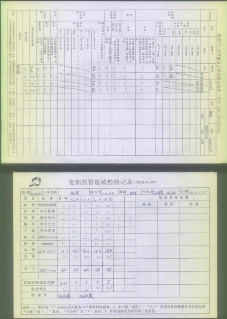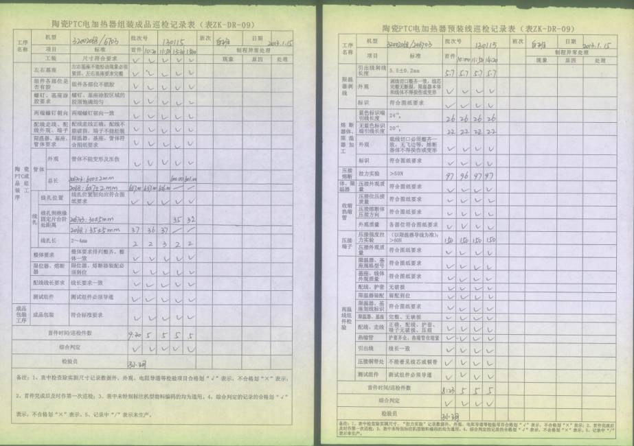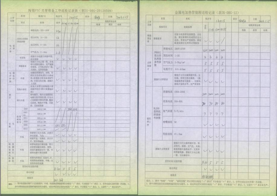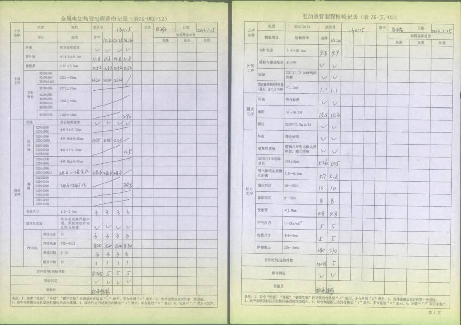 電熱管車間首件、制程巡檢、末件表